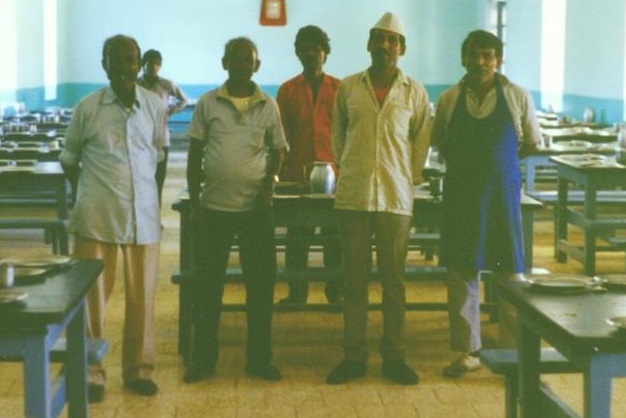 Bearers in the ref, 1991. By Ashley D'Souza (1972) Cook (Magan?), Peanut, ?, Mansingh, Hira The dhobis' tubular, 1979